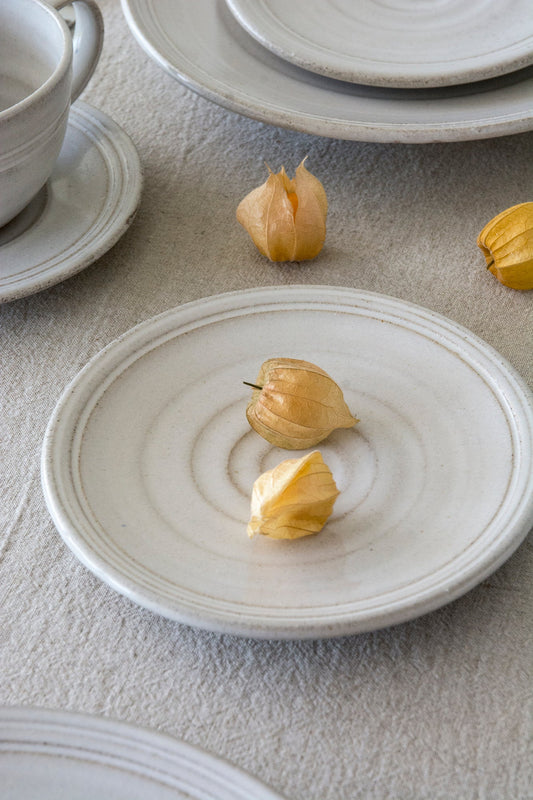 Set of 6 White Pottery Side Plates